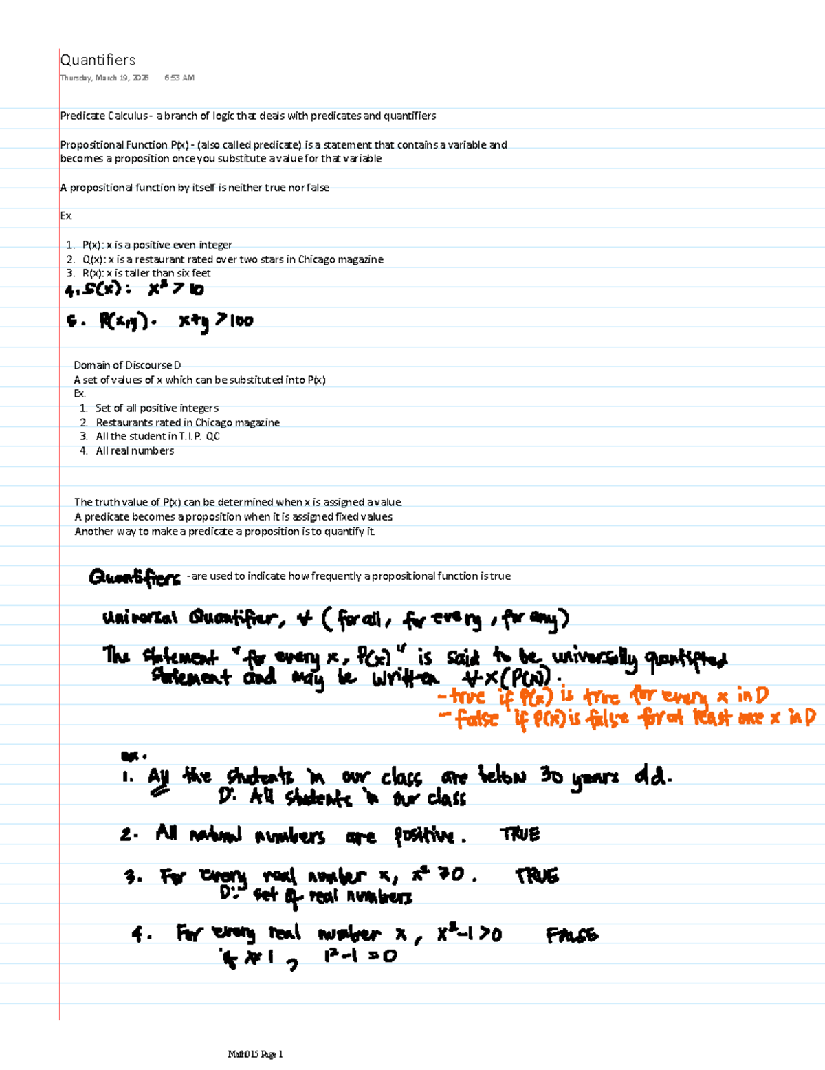 Math015: Understanding Quantifiers in Predicate Calculus - Studocu