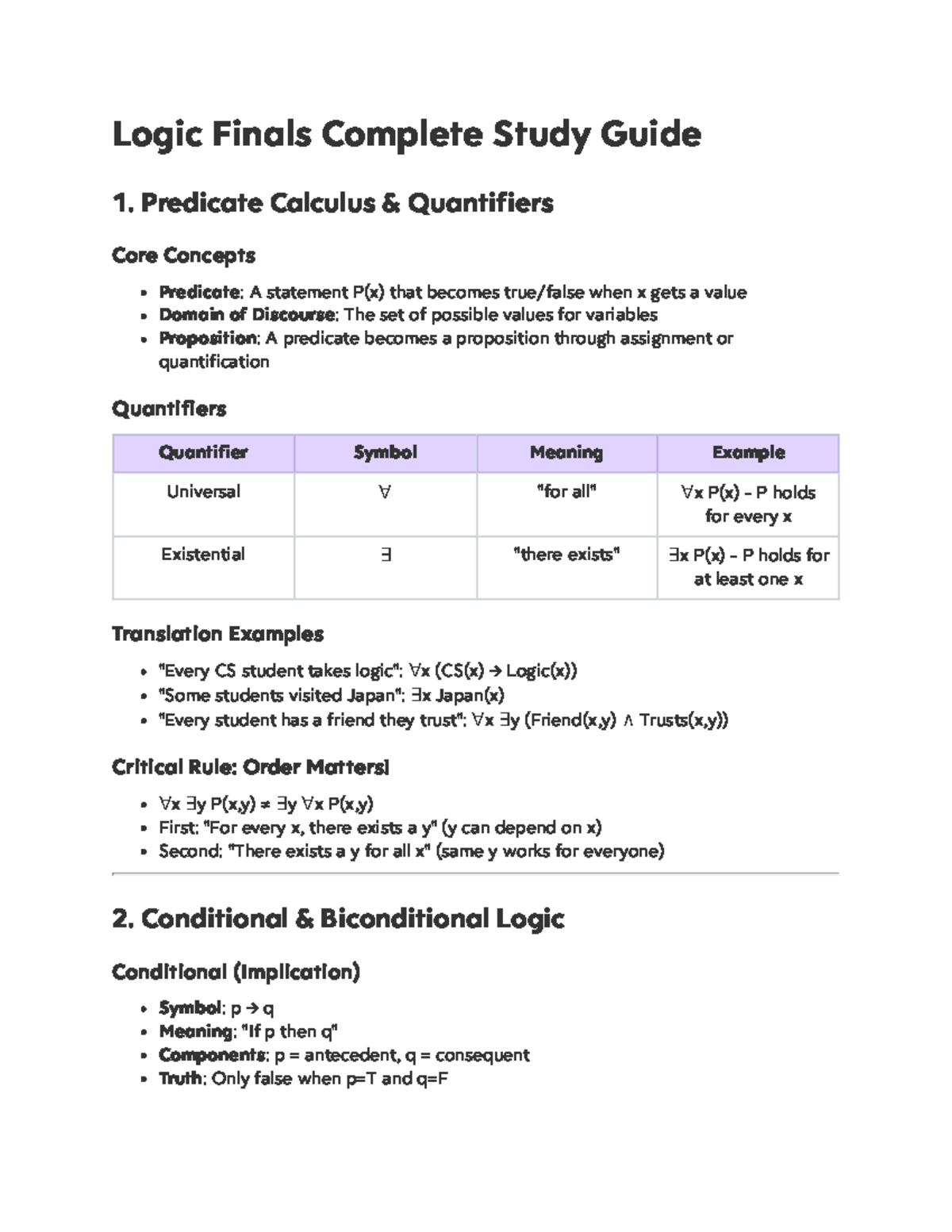 Logic 101 Final Exam Comprehensive Study Guide - Studocu