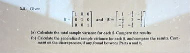 Solved 3.5. Calculate the generalized sample variance Sfor | Chegg.com