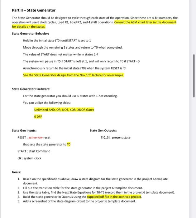 Solved Part II - State Generator State Diagram for the State | Chegg.com
