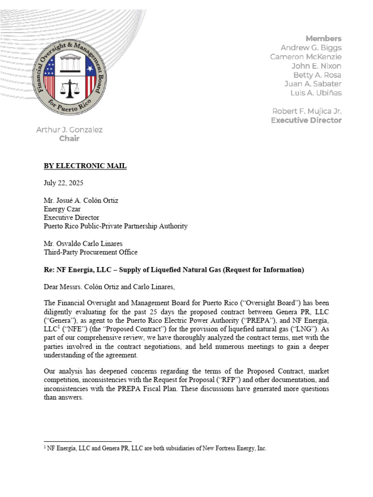 By Electronic Mail: NF Energía, LLC and Genera PR, LLC Are Both ...