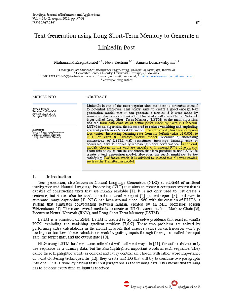 (A) Text Generation Using Long Short-Term Memory To Generate A LinkedIn ...