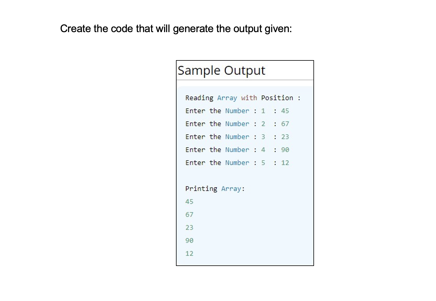 Solved Create the code that will generate the output given: | Chegg.com