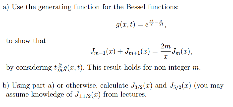 Solved (a) The generating function for Bessel functions of | Chegg.com