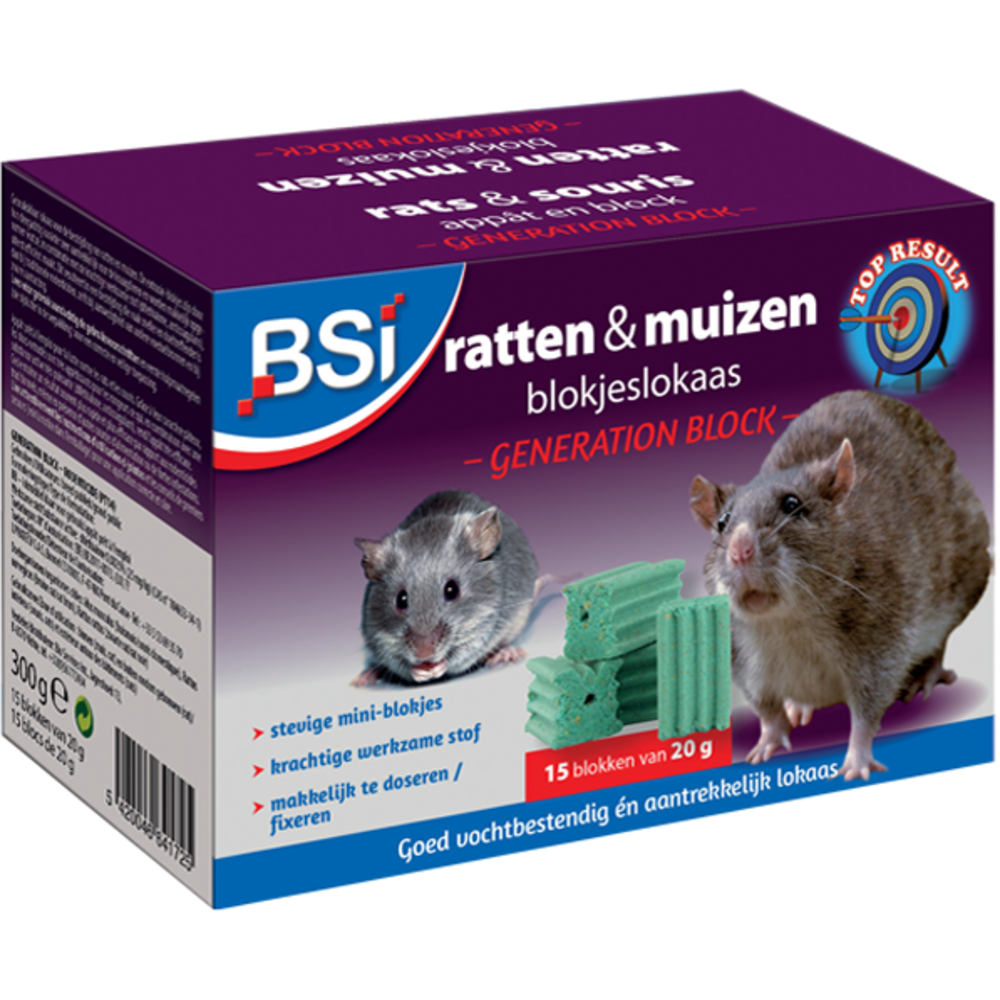 BSI Generation Block "ratten- en muizengif" 300 g (15 x 20 g) | Megatip.be