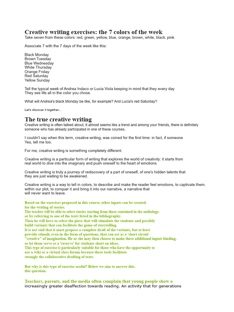 Creative Writing Exercises | PDF | Narrative | Storytelling