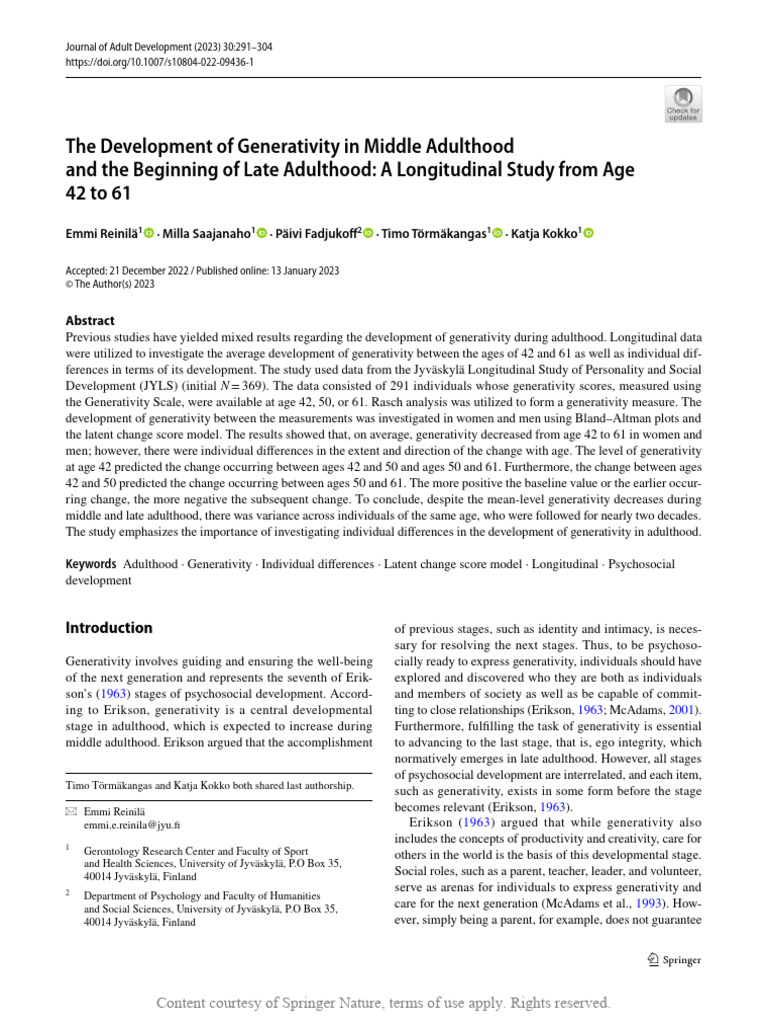 Generativity: A systematic review and conceptual framework - Thomas ...