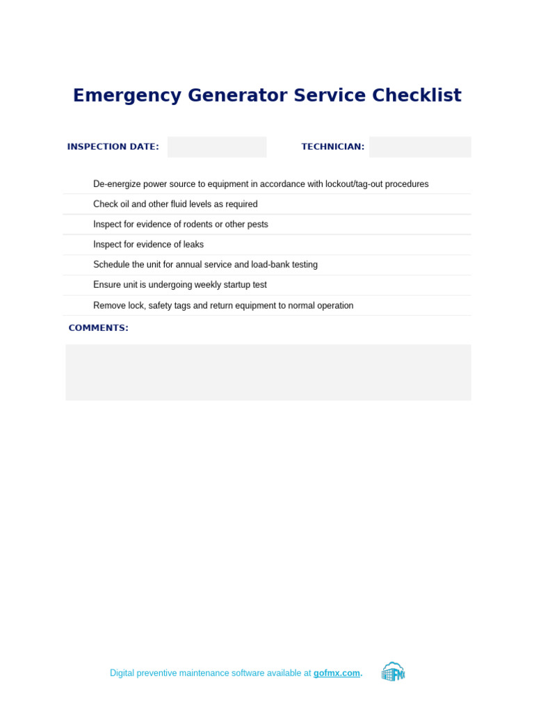 Creating and Using a Generator Maintenance Checklist - DataMyte