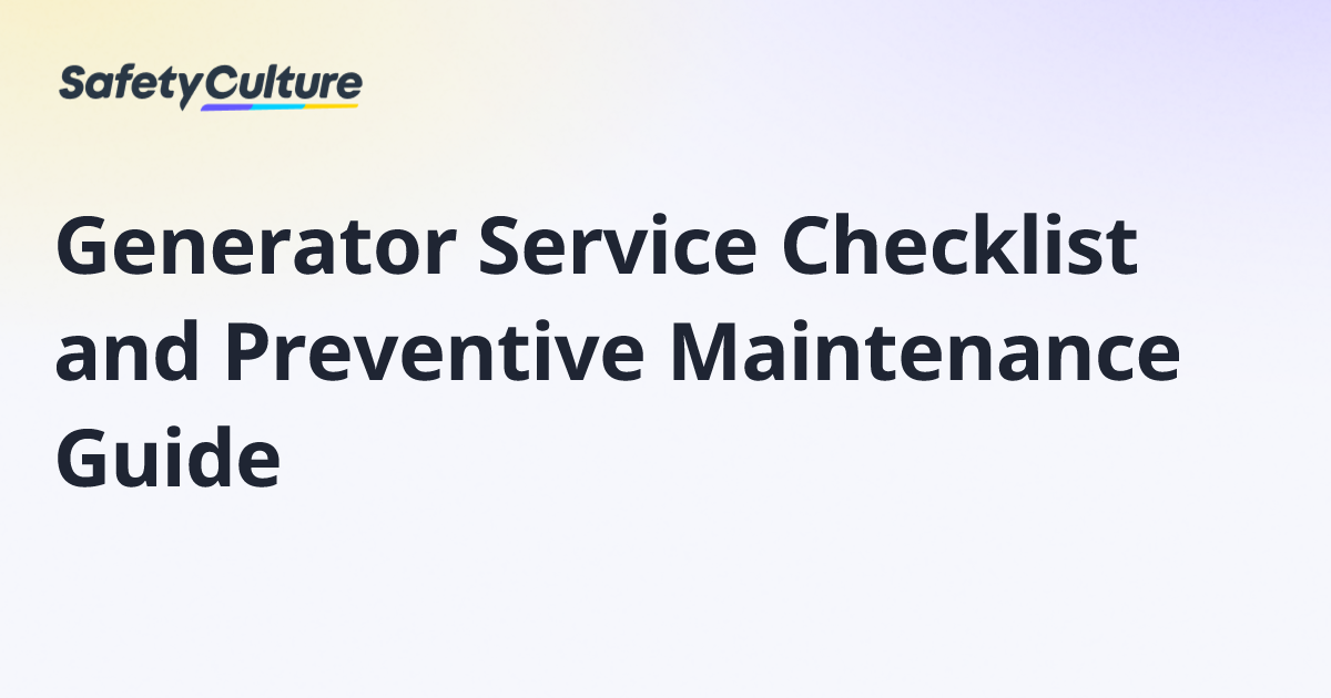 Free Generator Maintenance Checklists | PDF | SafetyCulture