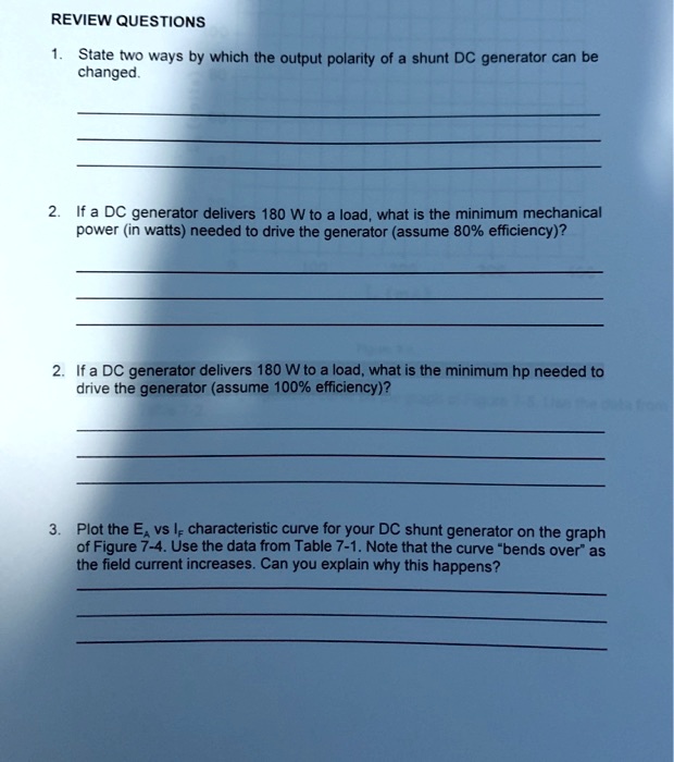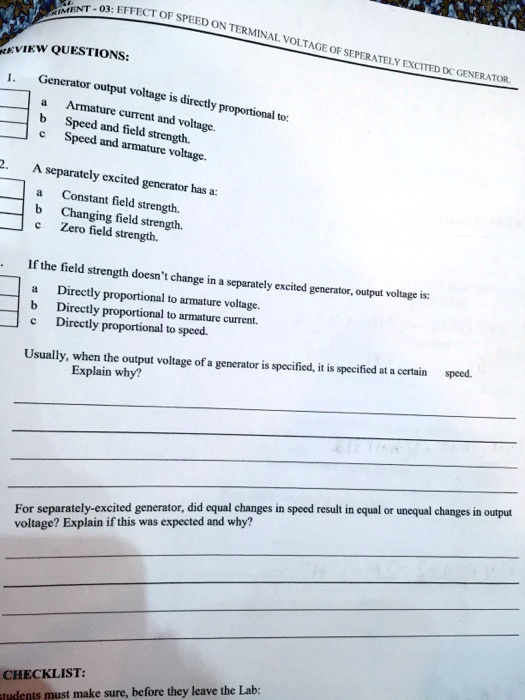 SOLVED: REVIEW QUESTIONS: VOLTAGE OF SEPARATELY EXCITED DC GENERATOR ...