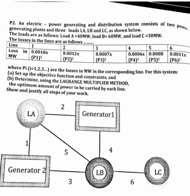 Solved P2. An electric - power generating and distribution | Chegg.com