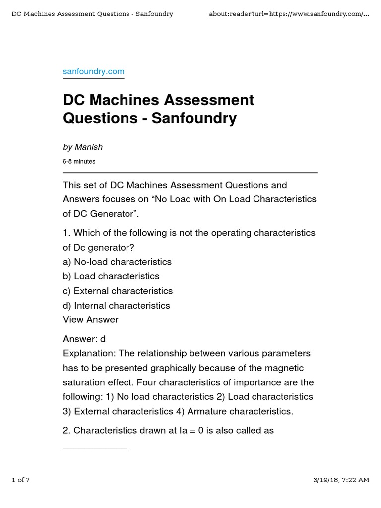 Questions On DC Generator | PDF | Electric Generator | Series And ...
