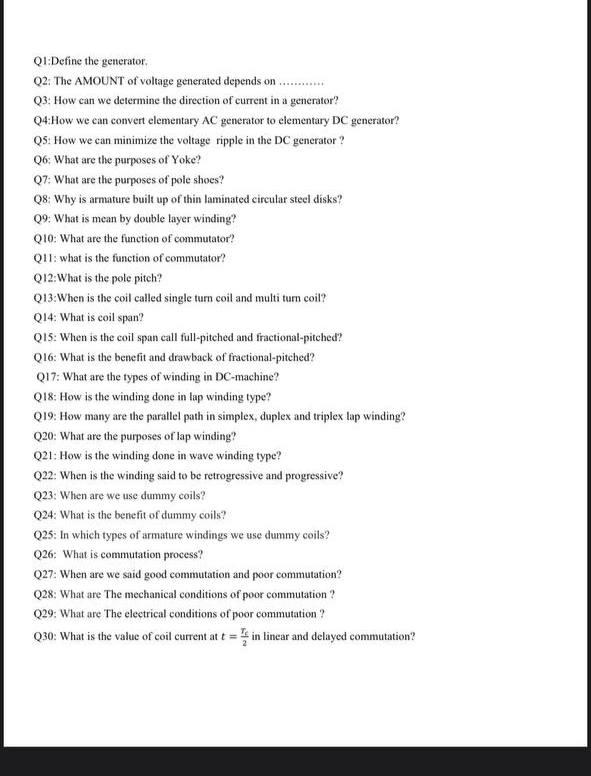 Solved Q1:Define the generator. Q2. The AMOUNT of voltage | Chegg.com
