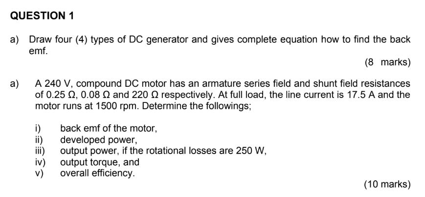 Solved QUESTION 1 a) Draw four (4) types of DC generator and | Chegg.com