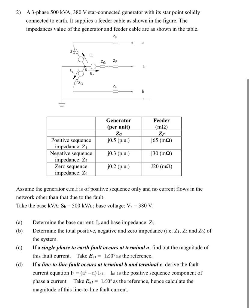 Solved Q 3) The schematic diagram of a generator supplying | Chegg.com