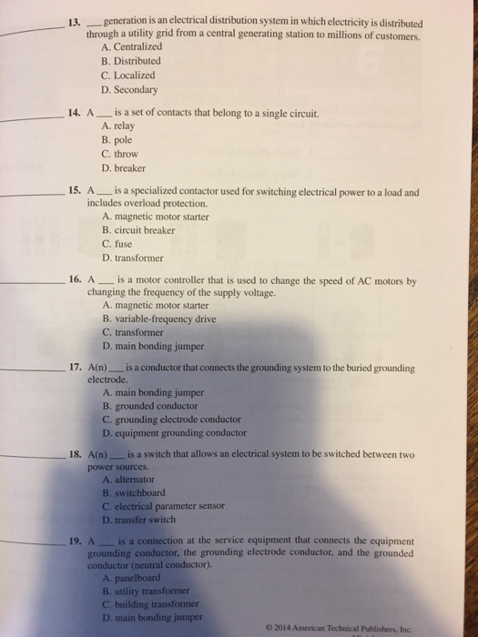 Solved 13. generation is an electrical distribution system | Chegg.com