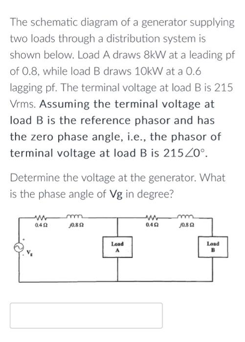 Solved The schematic diagram of a generator supplying two | Chegg.com