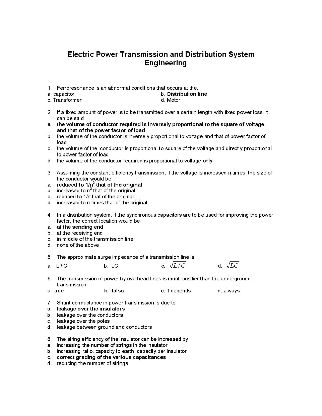Solved Electric Power and Distribution Sample Questions | Chegg.com