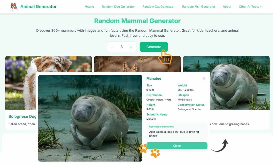 Random Mammal Generator - Explore the animal world of mammals