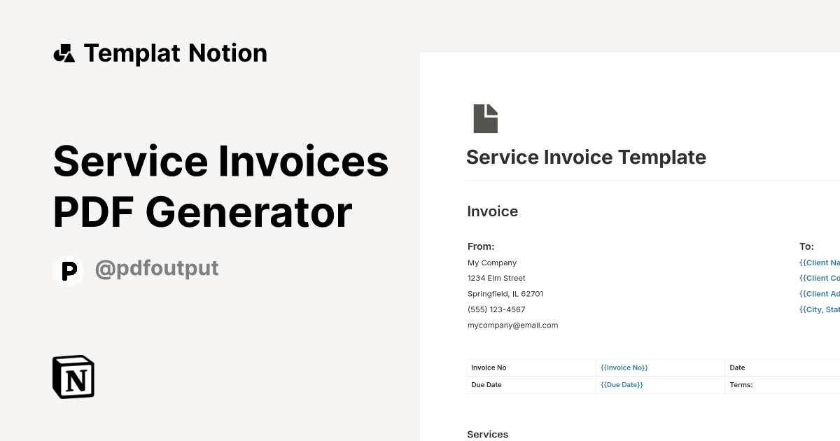 Templat Service Invoices PDF Generator | Notion Marketplace