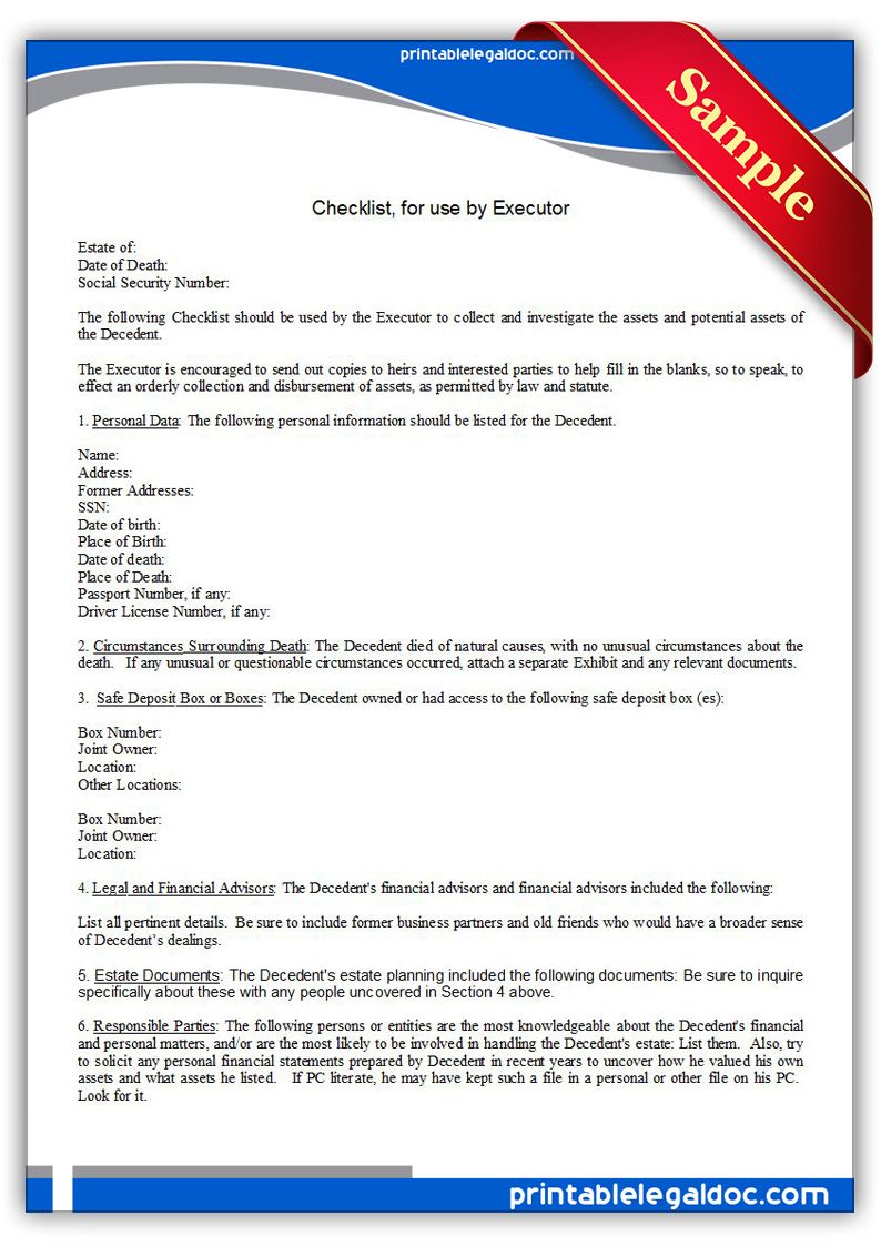 Free Printable Executor Checklist - Printable And Enjoyable Learning
