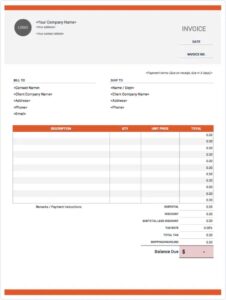Generic Invoice Template Free Download word, excel, google docs and sheets