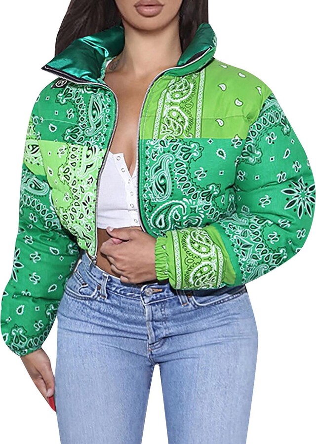 Generic Womens Cropped Puffer Jacket Winter Long Sleeve Zip Up Quilted ...