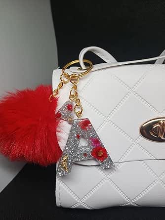 Amazon.com: Generic Keychain with the initial with a glitter and flower ...