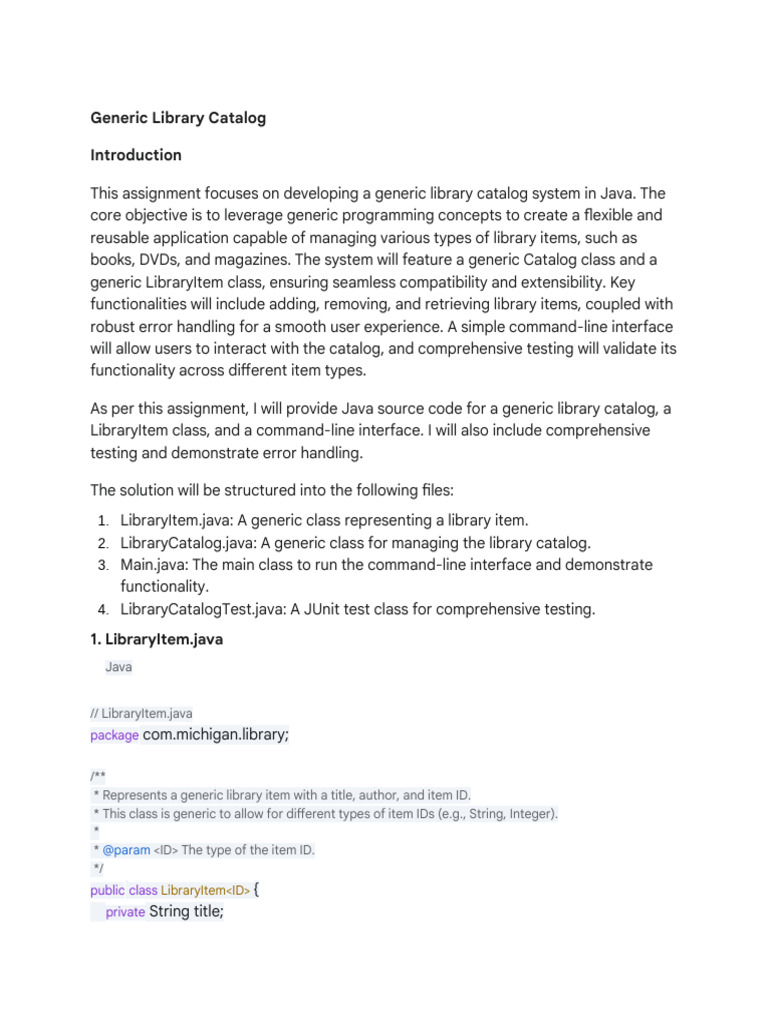 Build a Generic Library Catalog in Java: Step-by-Step Guide | Course Hero