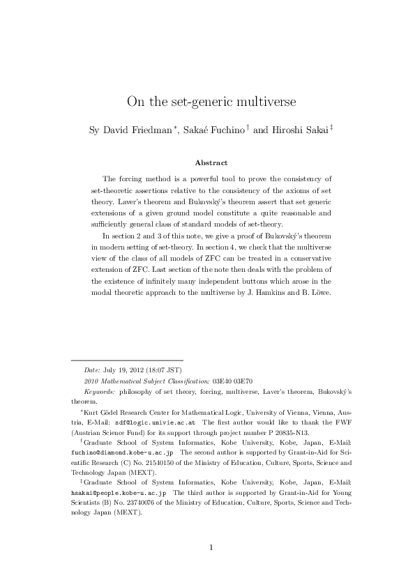 (PDF) On the set-generic multiverse