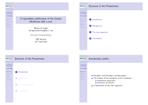 (PDF) A case in favour of the generic multiverse with a core (slides)