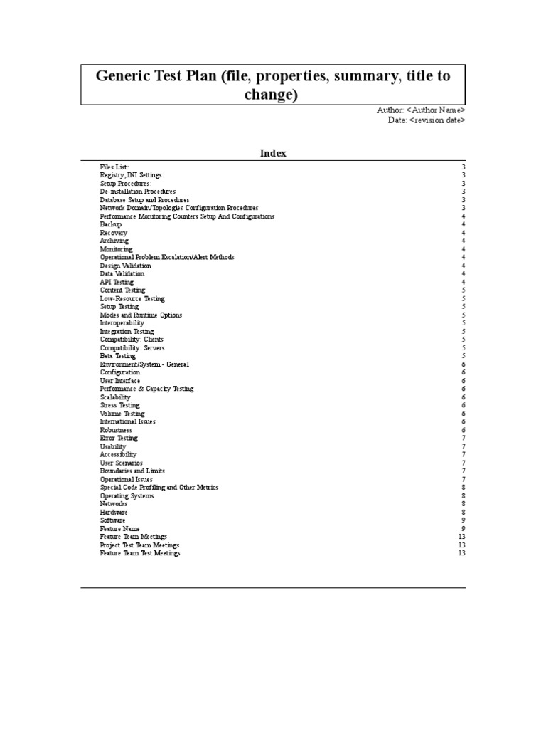 Generic Test Plan (File, Properties, Summary, Title To Change) | PDF ...