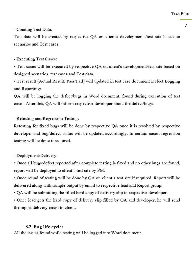 Test Plan - Template in Word and Pdf formats - page 7 of 11