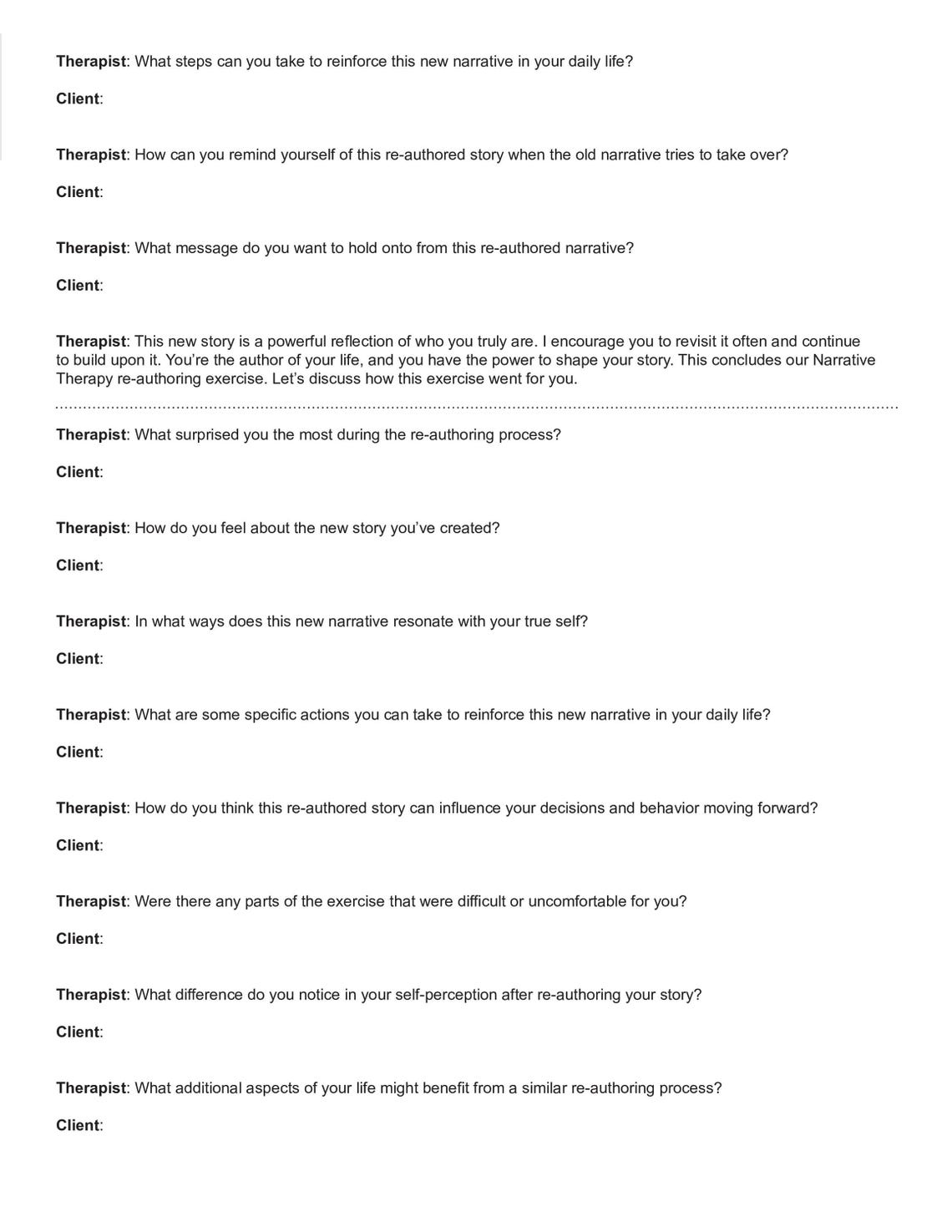 Narrative Therapy Re-authoring Technique Script Worksheet Fillable PDF ...