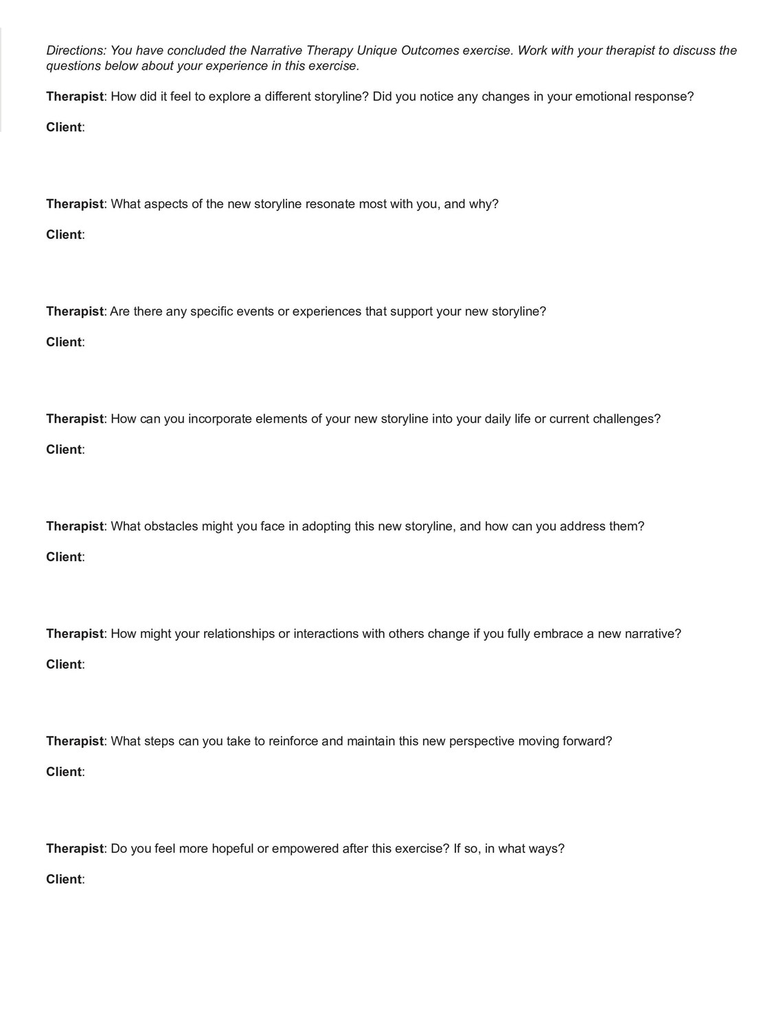 Narrative Therapy Unique Outcomes Technique Script Worksheet | Fillable ...