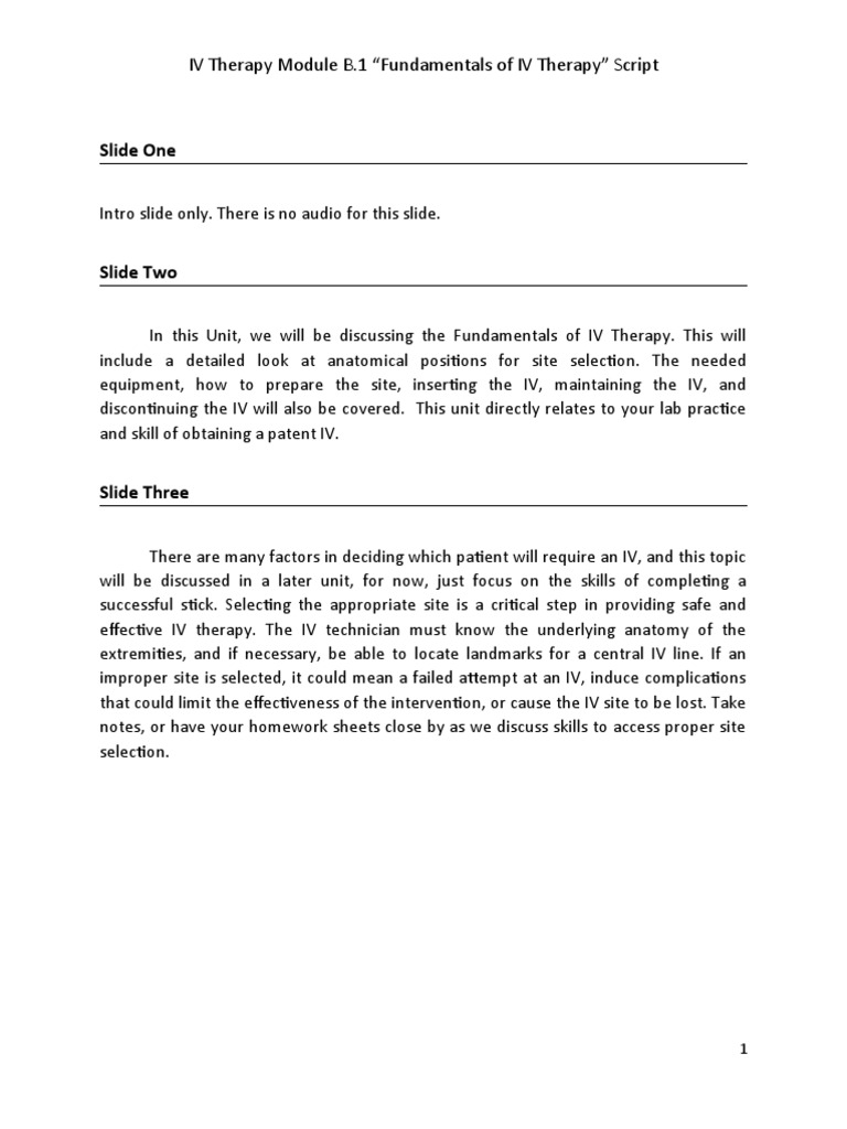 Slide One: IV Therapy Module B.1 "Fundamentals of IV Therapy" Script ...