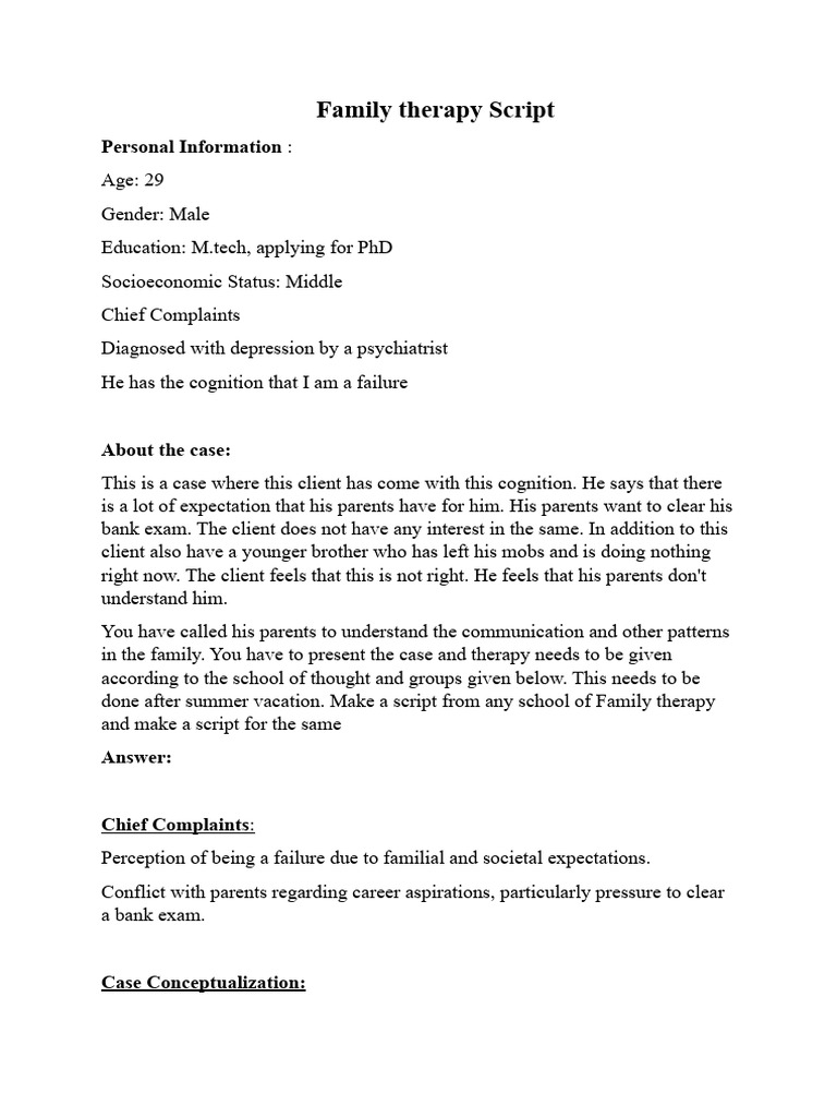 Family Therapy Script for Client M | PDF | Cognitive Behavioral Therapy ...