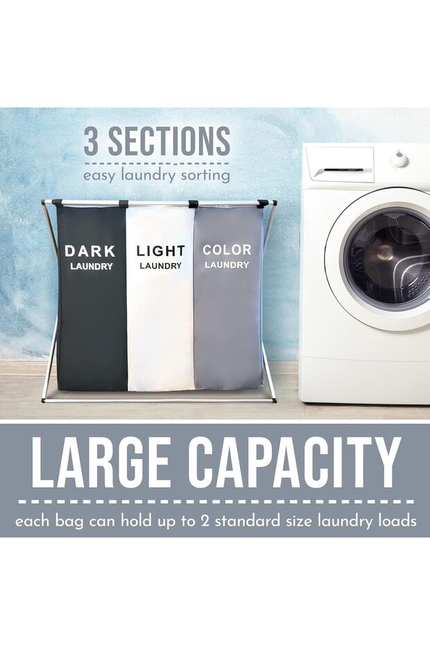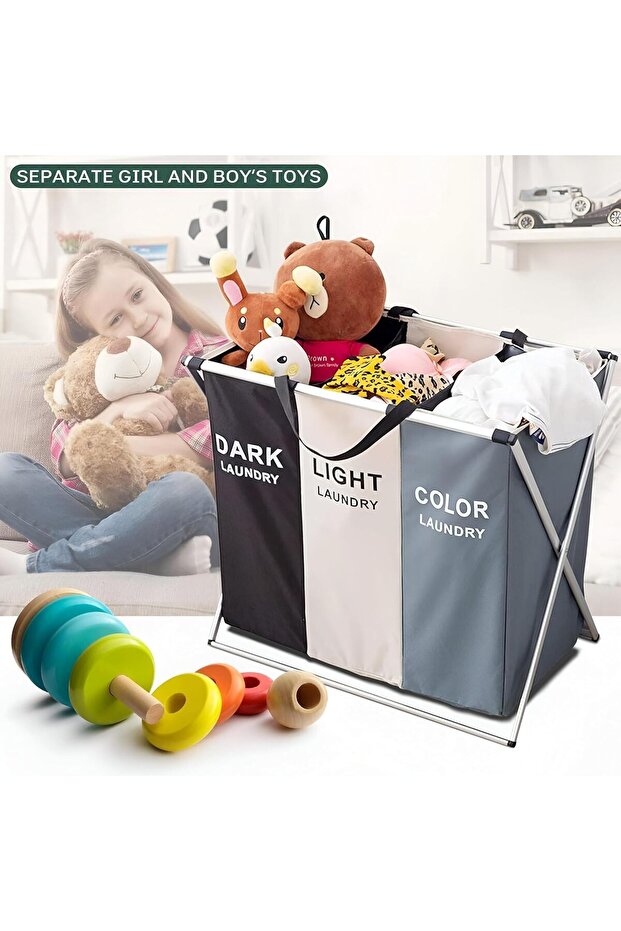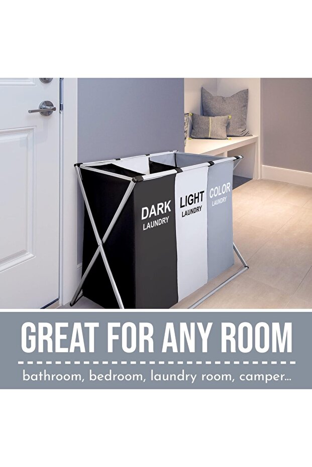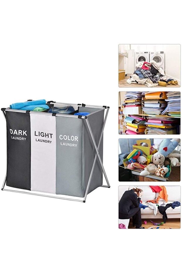 Generic Laundry sorting basket, black/white, 70×60×40 cm- Trendyol