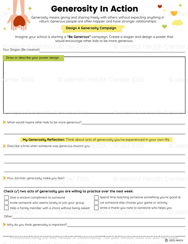 Generosity Worksheets (2 Pages) – Mental Health Center Kids