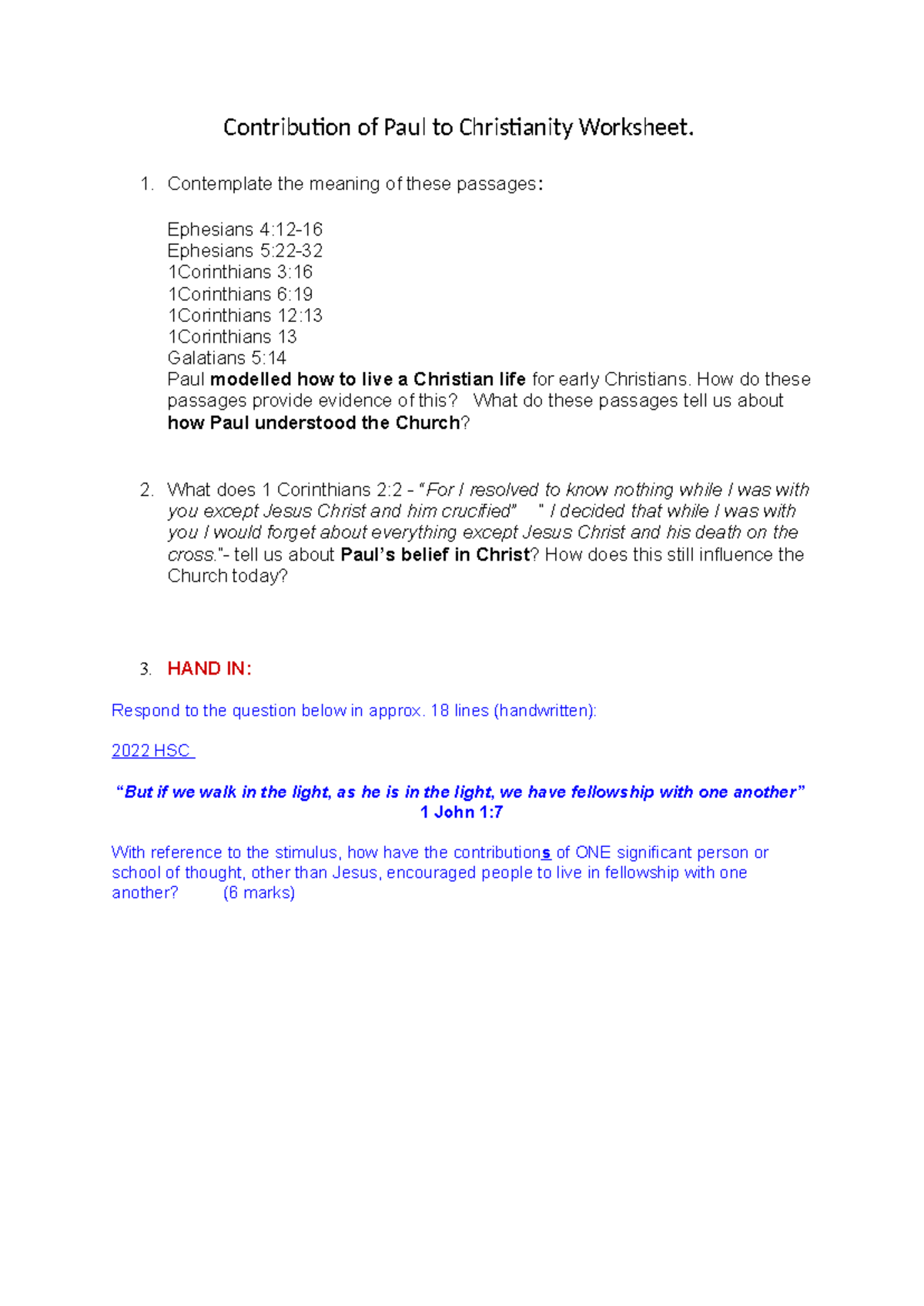 Contribution of Paul to Christianity: Worksheet & Reflections - Studocu