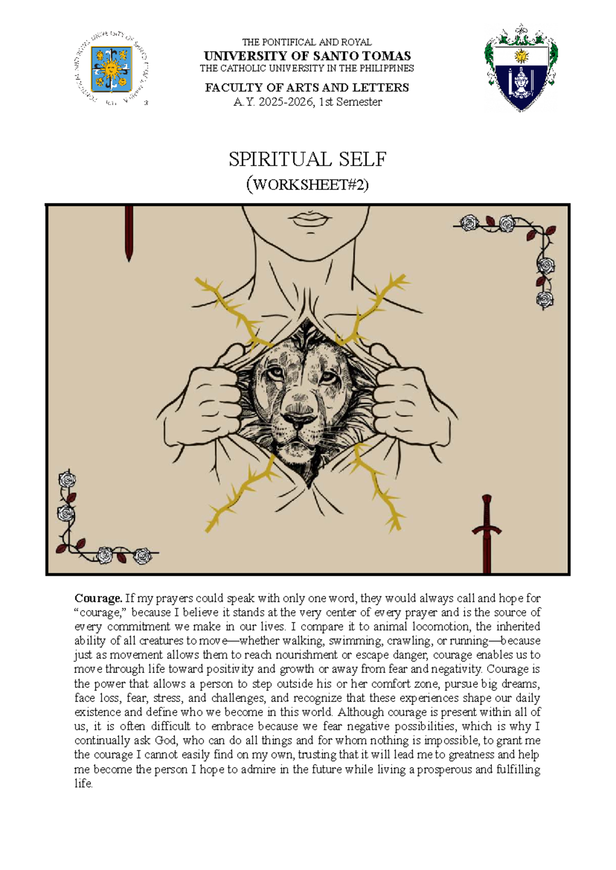 Spiritual Self Reflection: Courage - Gogolin Worksheet#2 1PHL2 - Studocu