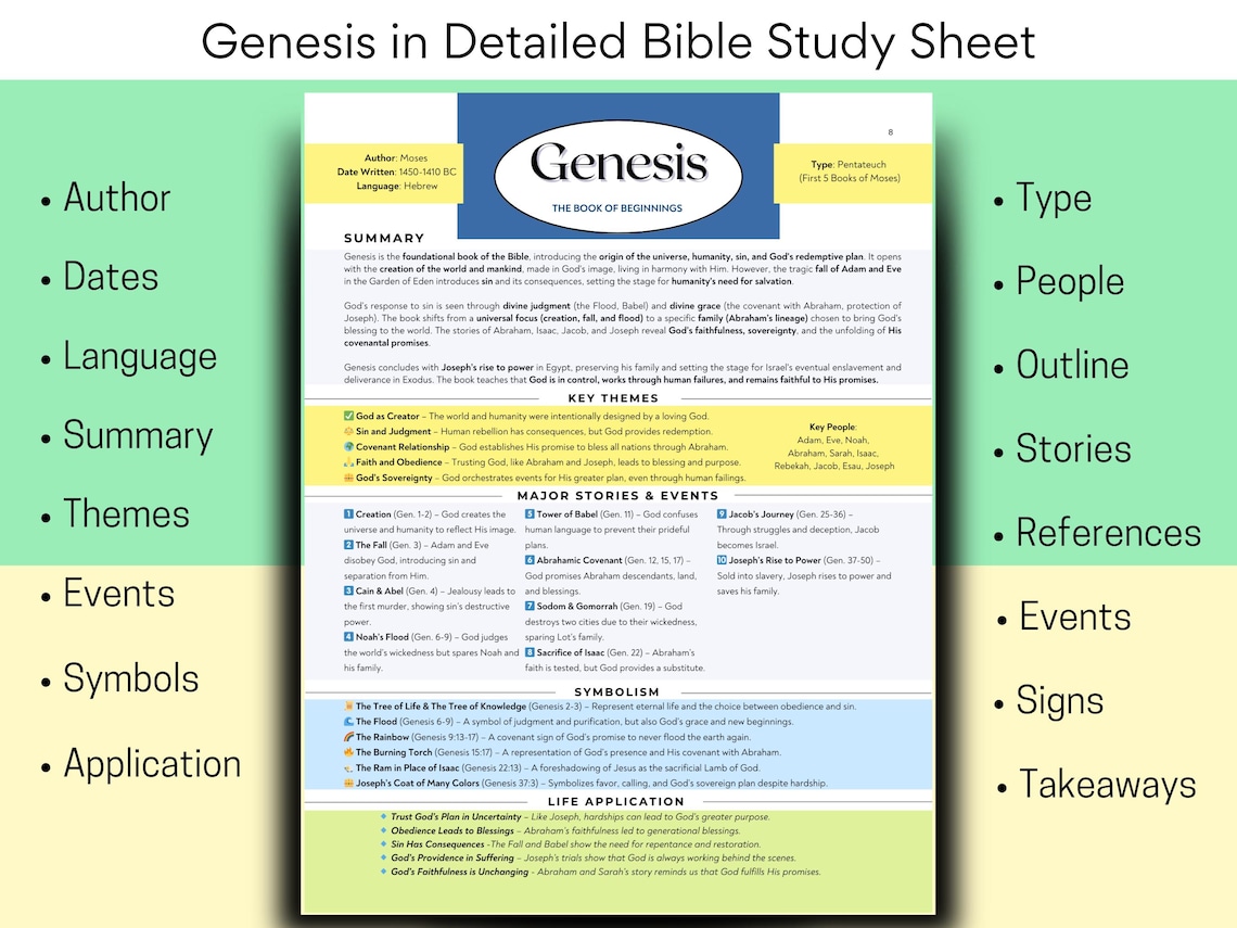 Genesis Bible Study Cheat Sheet: Old Testament Summary (digital ...