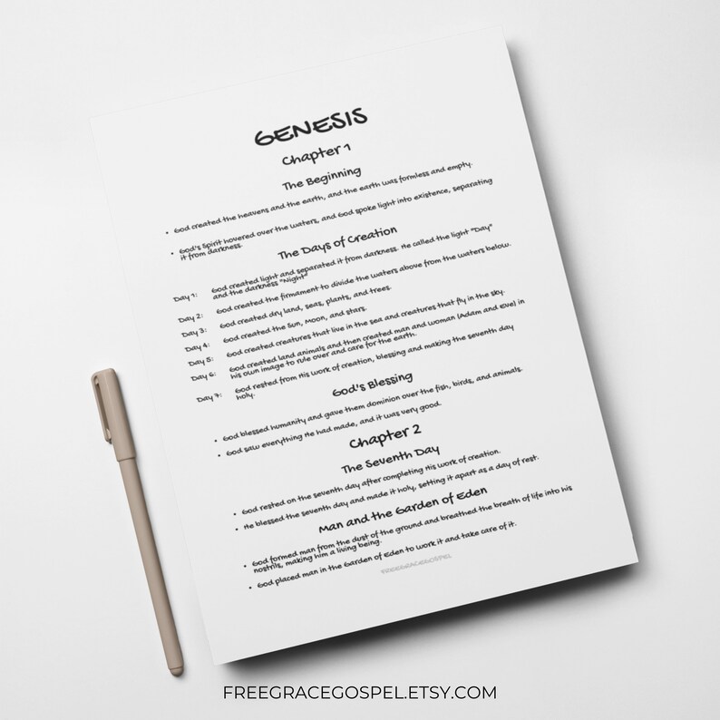 The Book of Genesis Made Simple Printable | Genesis Summary Sheet ...