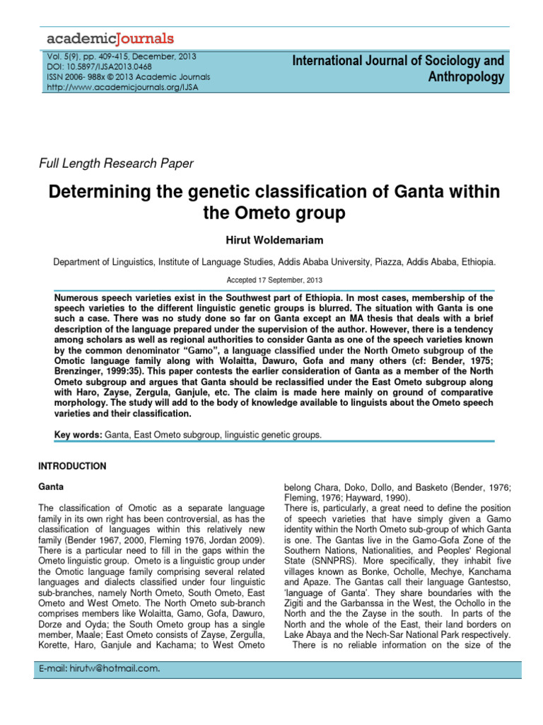 Determining The Genetic Classification of Ganta Within The Ometo Group ...