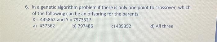 Solved 6. In a genetic algorithm problem if there is only | Chegg.com