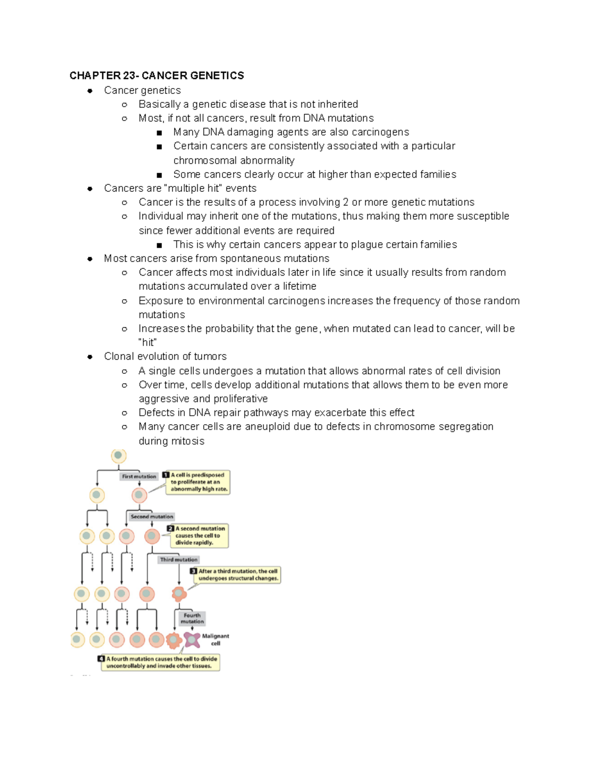 Genetics Chapter 23 Notes Part 1 - CHAPTER 23- CANCER GENETICS Cancer ...