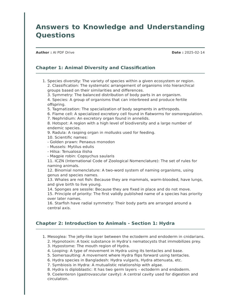 Answers To Knowledge and Understanding Questions: Chapter 1: Animal ...