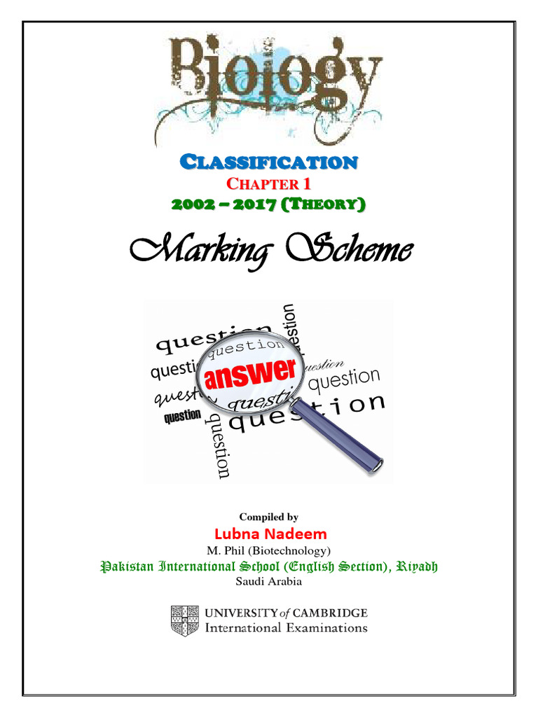 Biology Classification Marking Scheme | PDF | Cell (Biology) | Nucleic ...