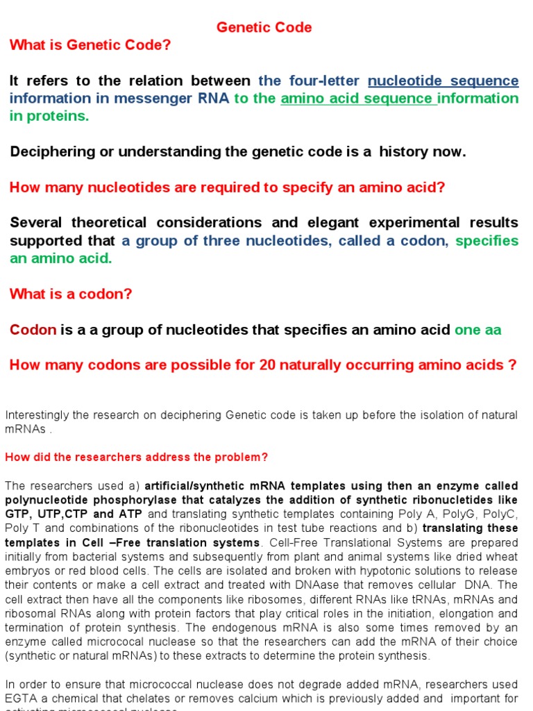 Understanding the Genetic Code Basics | PDF | Genetic Code | Nucleic ...
