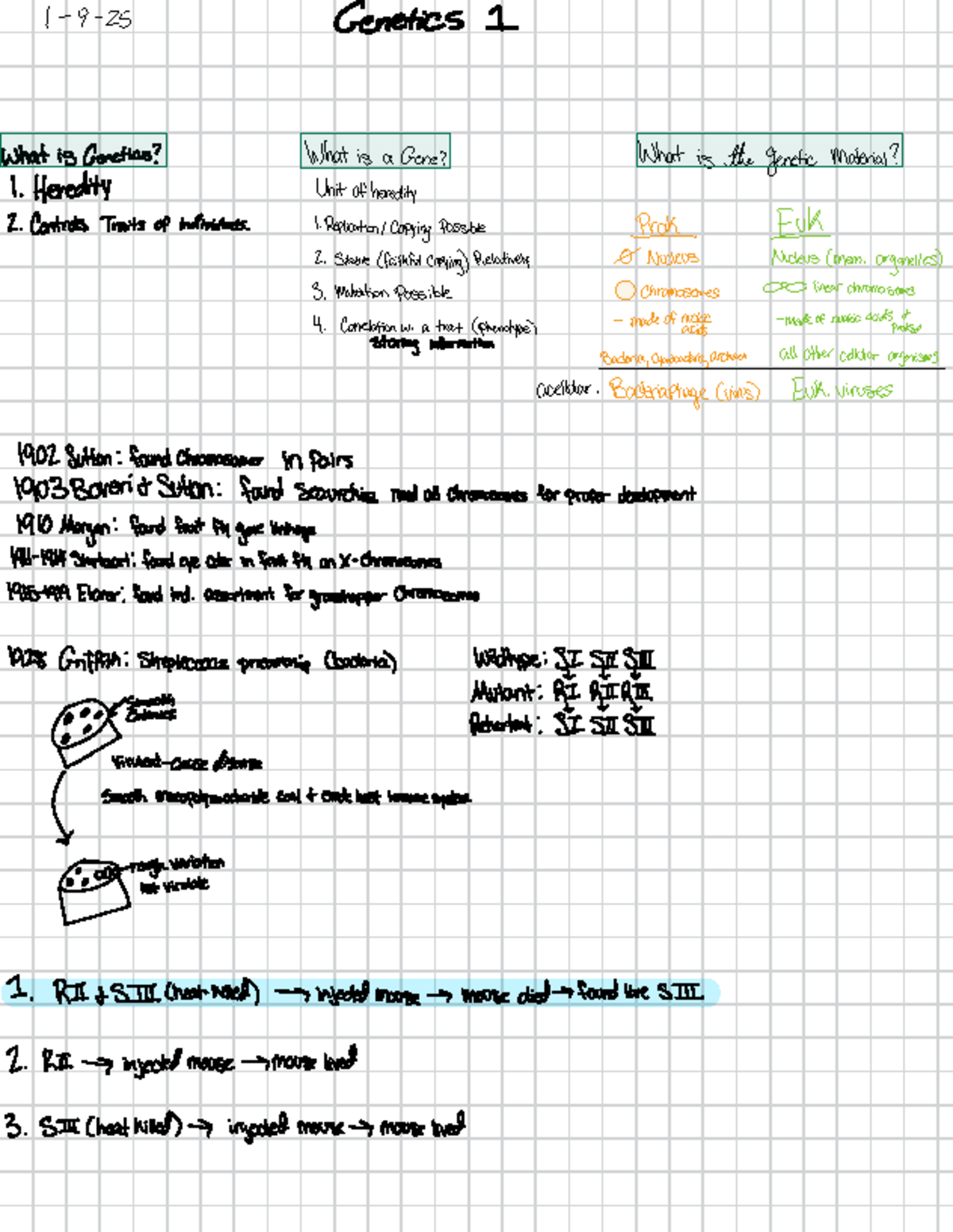 BIOL-102 Genetics Notes p1 - Lecture 1: Introduction; Single Gene ...
